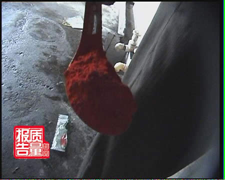 原来,所谓的特殊处理就是在淀粉浆里添加色素。又过了一个晚上,我们在这个加工点里看到了加过色素的粉条。其颜色果然鲜艳诱人。对此,工人颇为得意地说,没有他们调不出来的颜色。