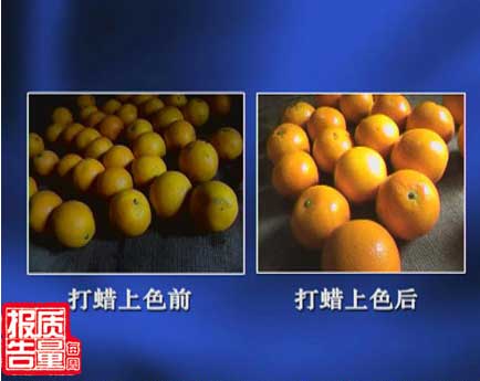 据老板介绍这么做是为了给橙子打蜡上色。这种红色的粉末是一种色素,而这种油状物则是石蜡。