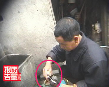 工人:不卫生那也没什么办法,把酒搞出来,不用嘴吸流不出来,是不是。