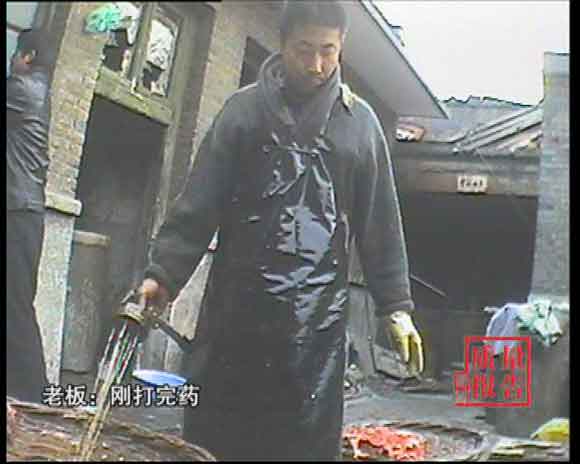 工人:这是食品防腐剂亚硝酸钠,这东西吃了要不得。