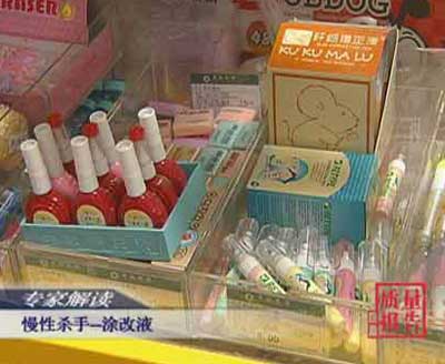 现在不少中学生的铅笔盒已经不放橡皮了,取而代之的是涂改液。因为涂改液用起来方便,而且覆盖力很强,但涂改液涂改了字迹,却留下了某些有毒物质,对人体的伤害很大,如果长期使用涂改液很容易造成慢性中毒。涂改液不像胶条一样容易把纸撕破,也不像橡皮那样对钢笔、圆珠笔束手无策,它方便、快捷、干净、覆盖力强,被学生们当作是改正错误的好帮手。